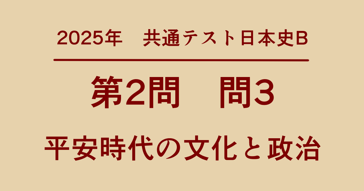 【2025年度 共通テスト日本史B 第2問 問3】平安時代の文化と政治