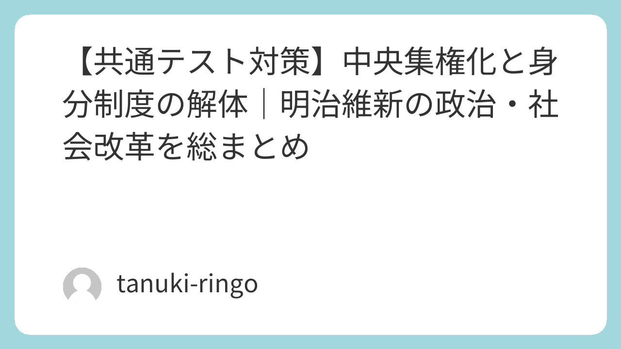 中央集権化と身分制度の解体|版籍奉還・廃藩置県・四民平等・地租改正を流れで理解する
