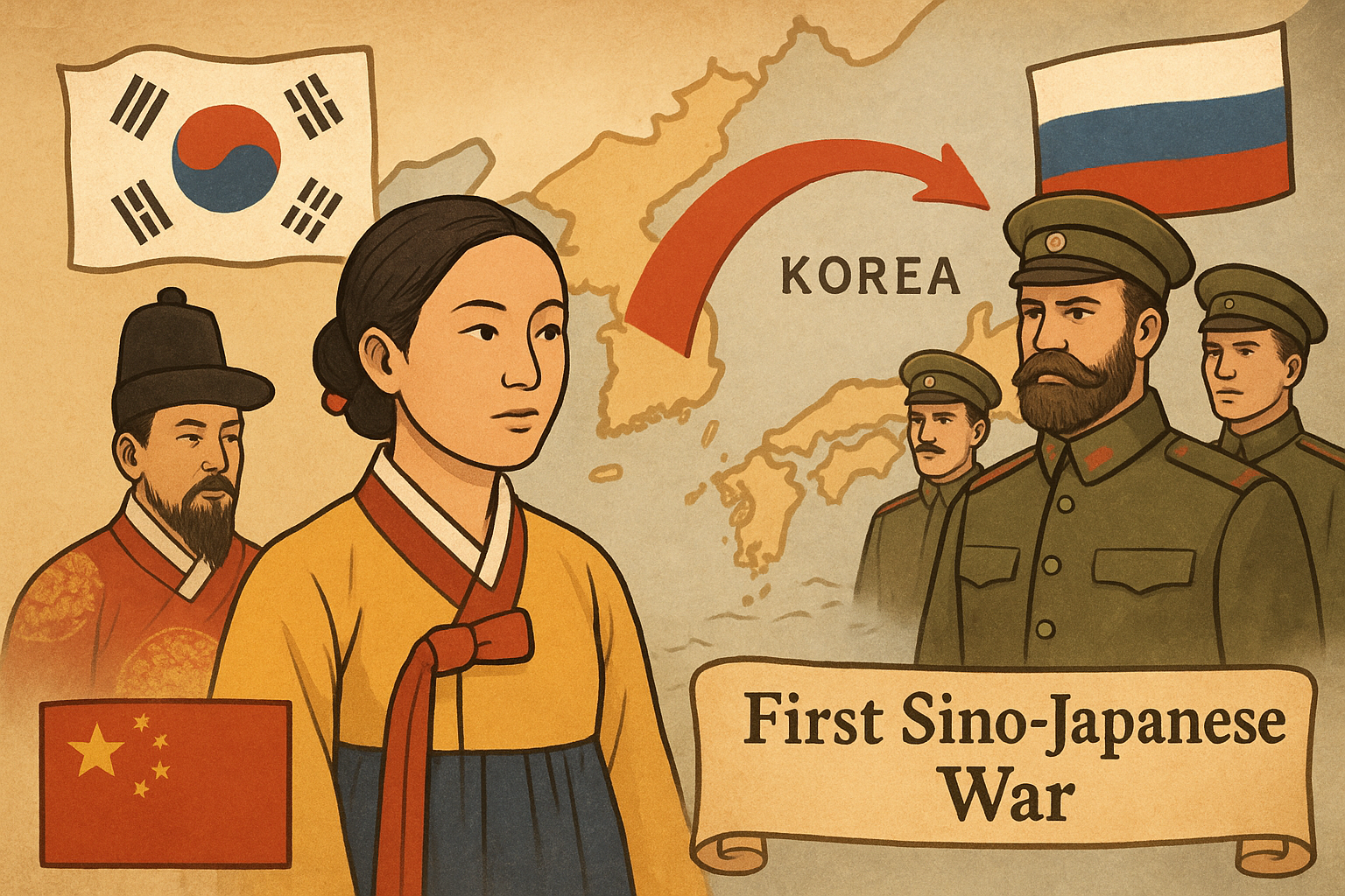 明治時代、日本は朝鮮半島に深く関与するようになりました。清の冊封体制からの離脱や列強の介入が続き、 朝鮮は国内勢力の対立と列強の思惑が交錯する舞台となっていきます。
