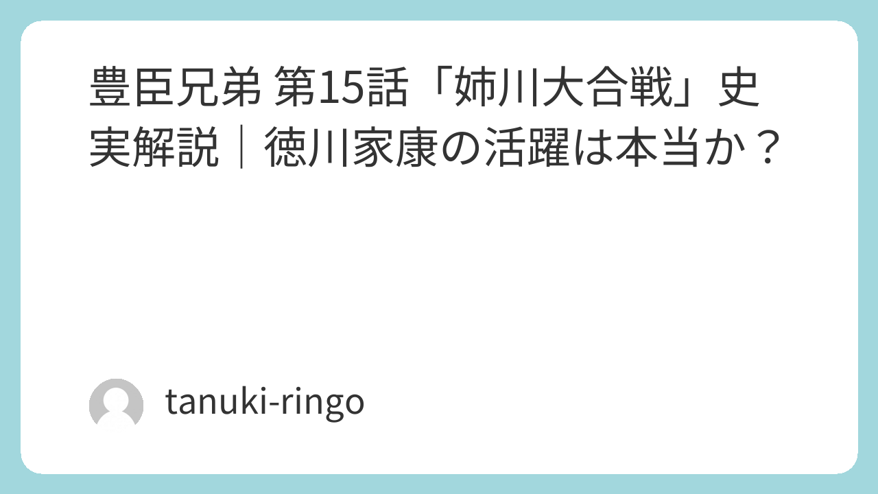 豊臣兄弟 第15話「姉川大合戦」史実解説|徳川家康の活躍は本当か?