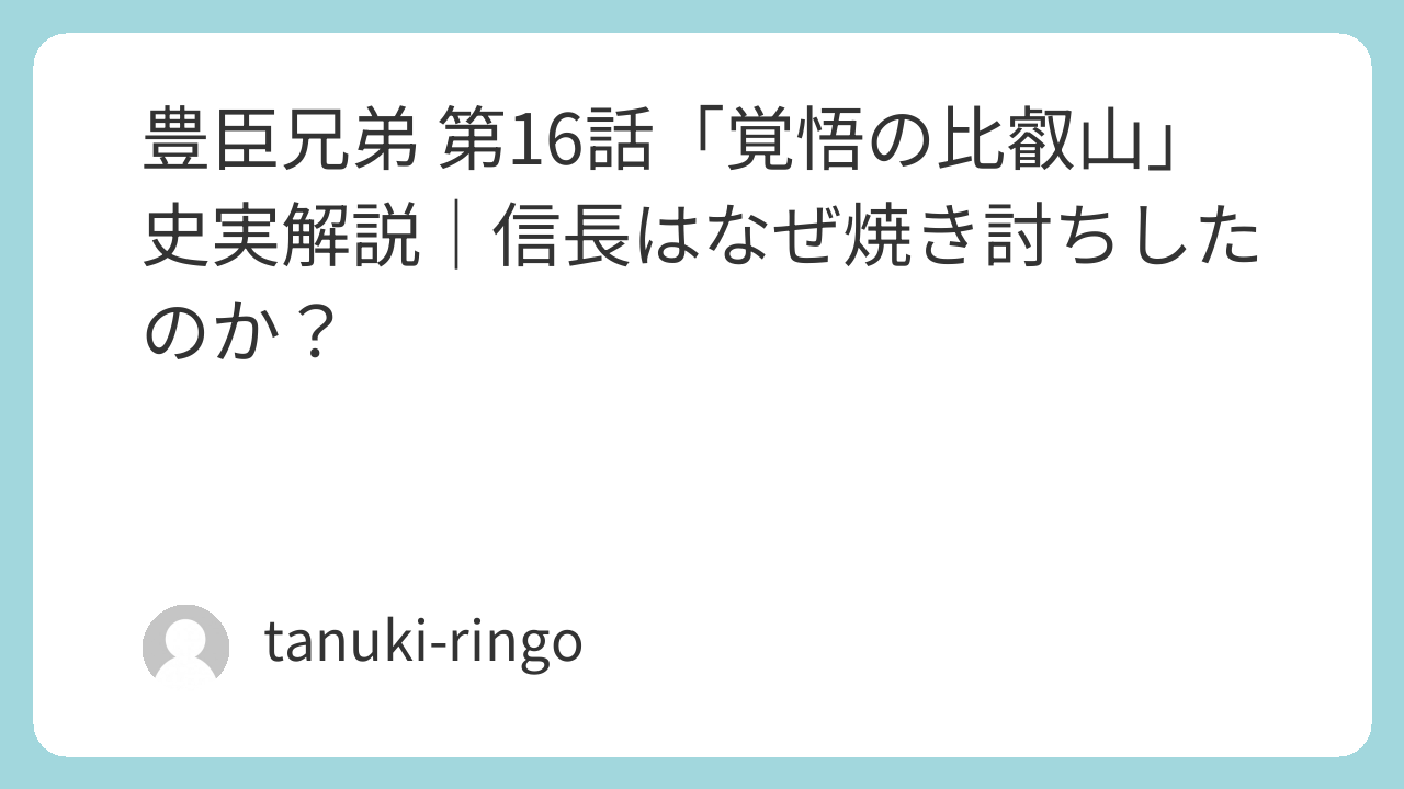 豊臣兄弟第16話「覚悟の比叡山」が放送されました。