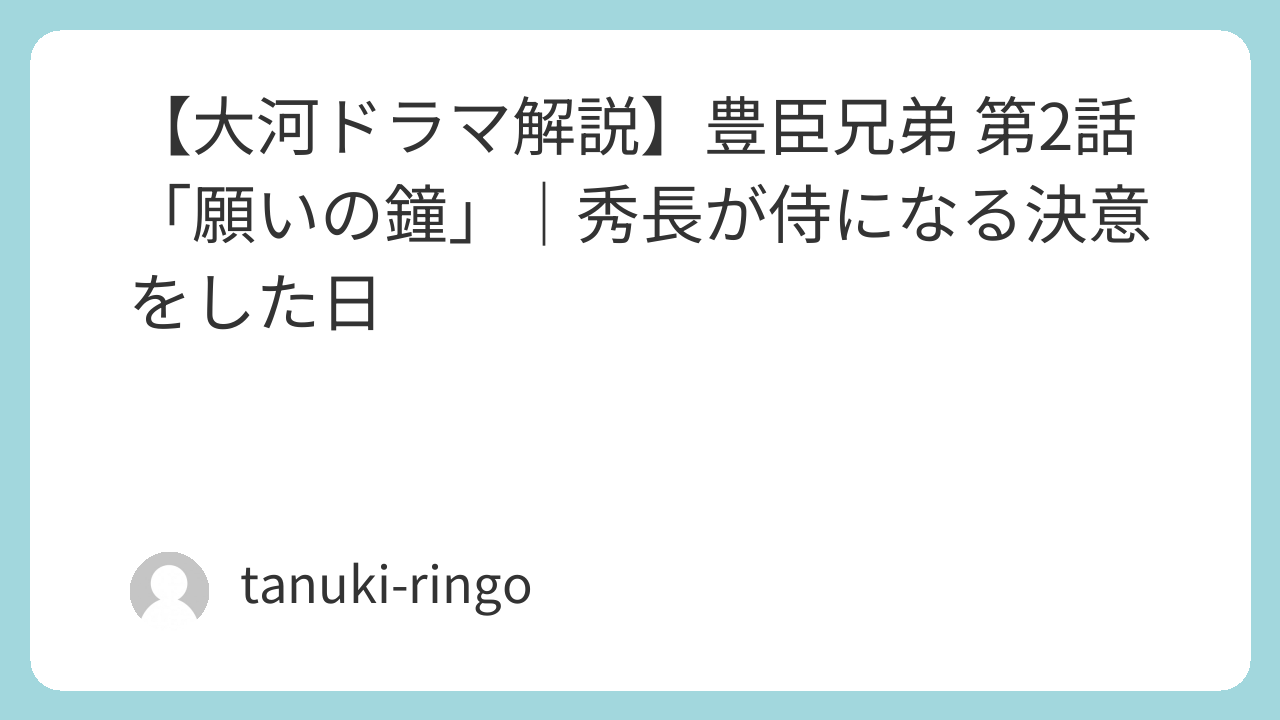 大河ドラマ「豊臣兄弟!」第2話「願いの鐘」は、