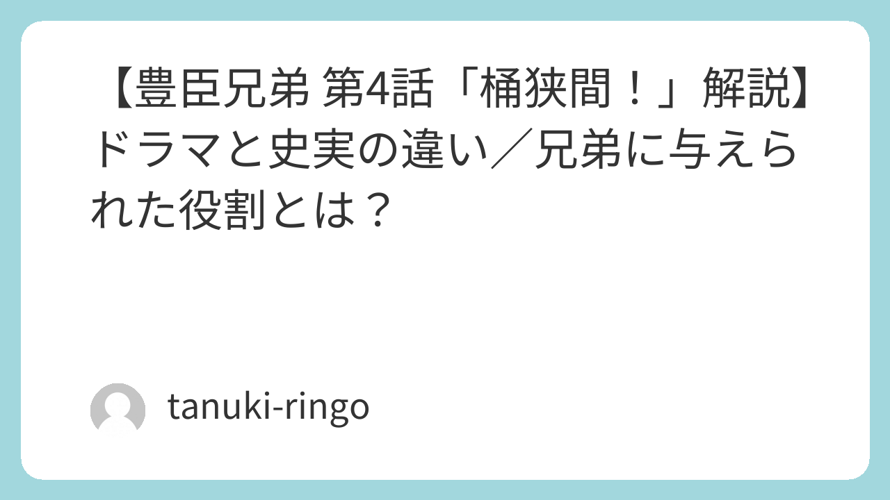 【豊臣兄弟 第4話「桶狭間!」解説】ドラマと史実の違い/兄弟に与えられた役割とは?
